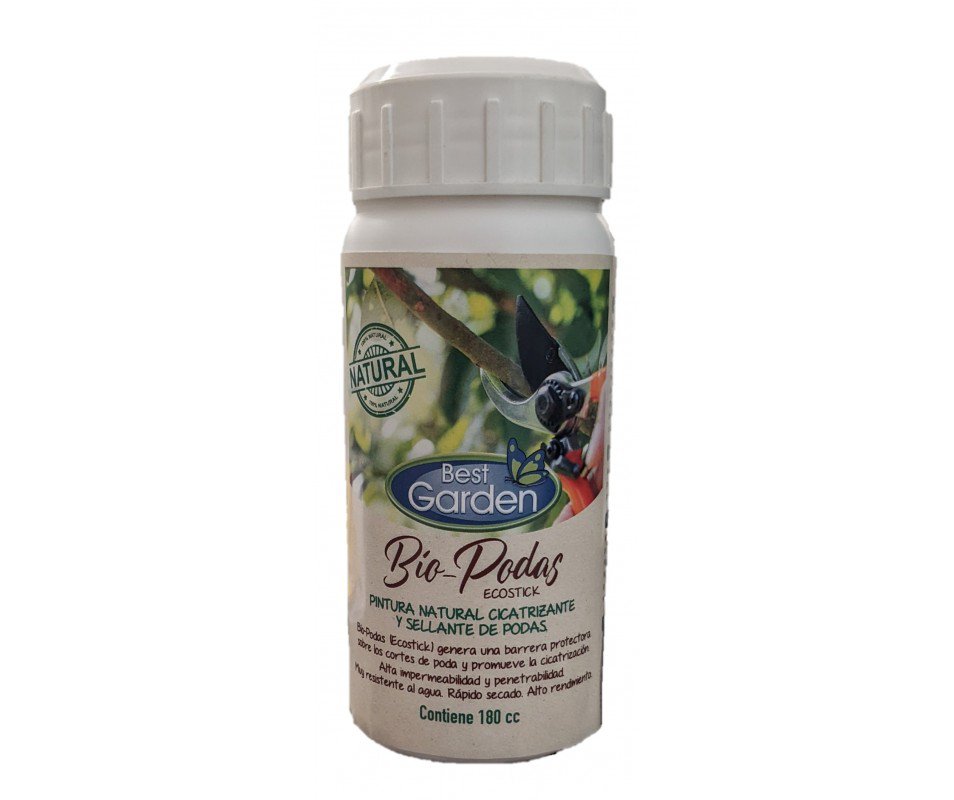 Bio-Podas es una pintura de poda, elaborada a partir de aceites vegetales y compuestos minerales de origen 100% natural. Protege el corte de poda generando una barrera física de alta adherencia, resistencia y repelencia al agua. Posee un color distintivo, que facilita su reconocimiento. Los componentes actúan durante la cicatrización de las heridas formando una capa protectora sobre la cicatriz del tejido.