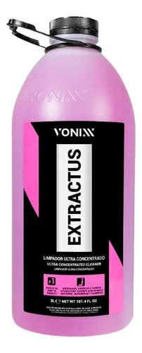 Vonixx Extractus 3,0L es un limpiador ultra concentrado de alto rendimiento y baja formación de espuma, diseñado para la limpieza profesional de tapicería, alfombras y moquetas. Su fórmula contiene tensioactivos especiales y agentes alcalinos que eliminan con facilidad diversos tipos de suciedad, especialmente las derivadas de grasas y sudor.