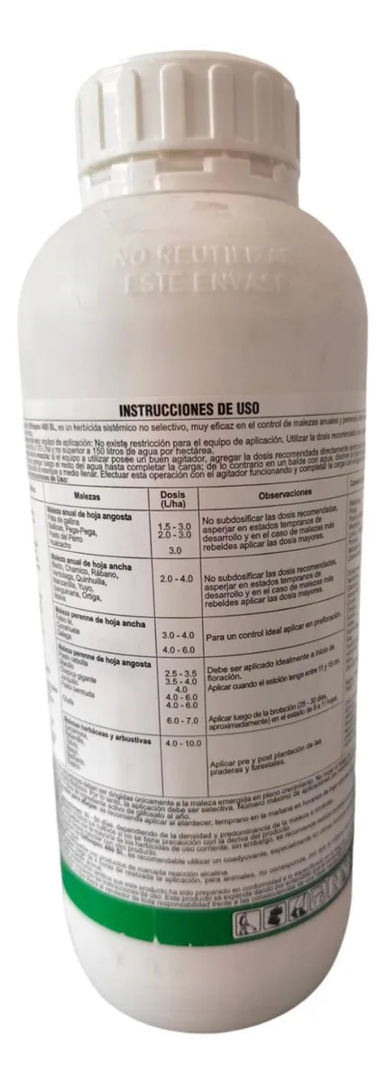 Herbicida sistémico, no selectivo y post-emergente. Está especialmente recomendado para el control de la mayoría de las malezas anuales, bianuales y perennes, de hoja ancha y hoja angosta. Controla malezas leñosas y ciperáceas.