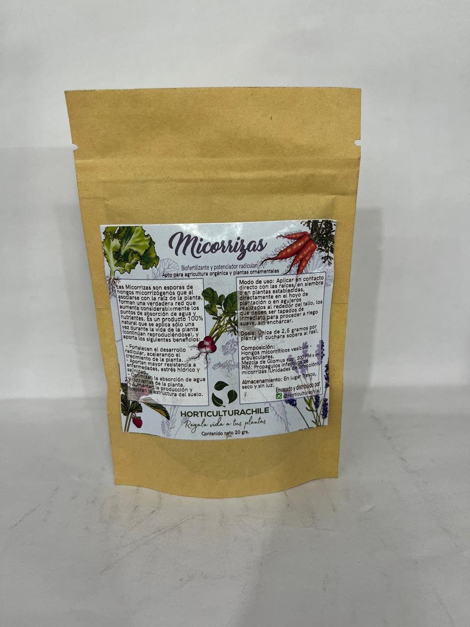 Las Micorrizas son esporas de hongos micorrizógenos que al asociarse con la raíz de la planta, forman una verdadera red que aumenta considerablemente los puntos de absorción de agua y nutrientes.