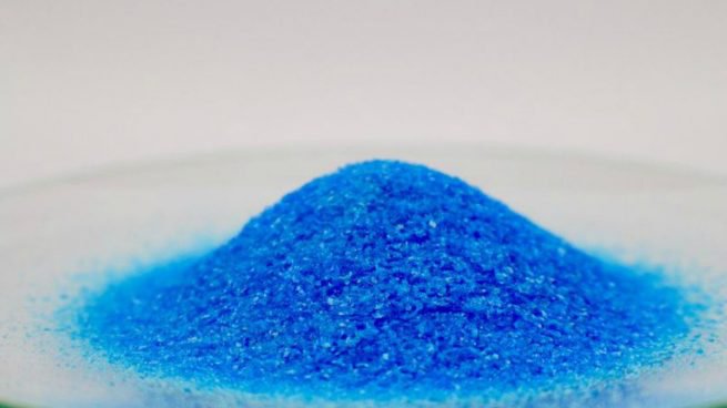 compuesto inorgánico de color azul intenso, de fórmula CuSO₄·5H₂O, usado principalmente como fungicida y bactericida en agricultura y para el tratamiento de piscinas para controlar el crecimiento de algas.